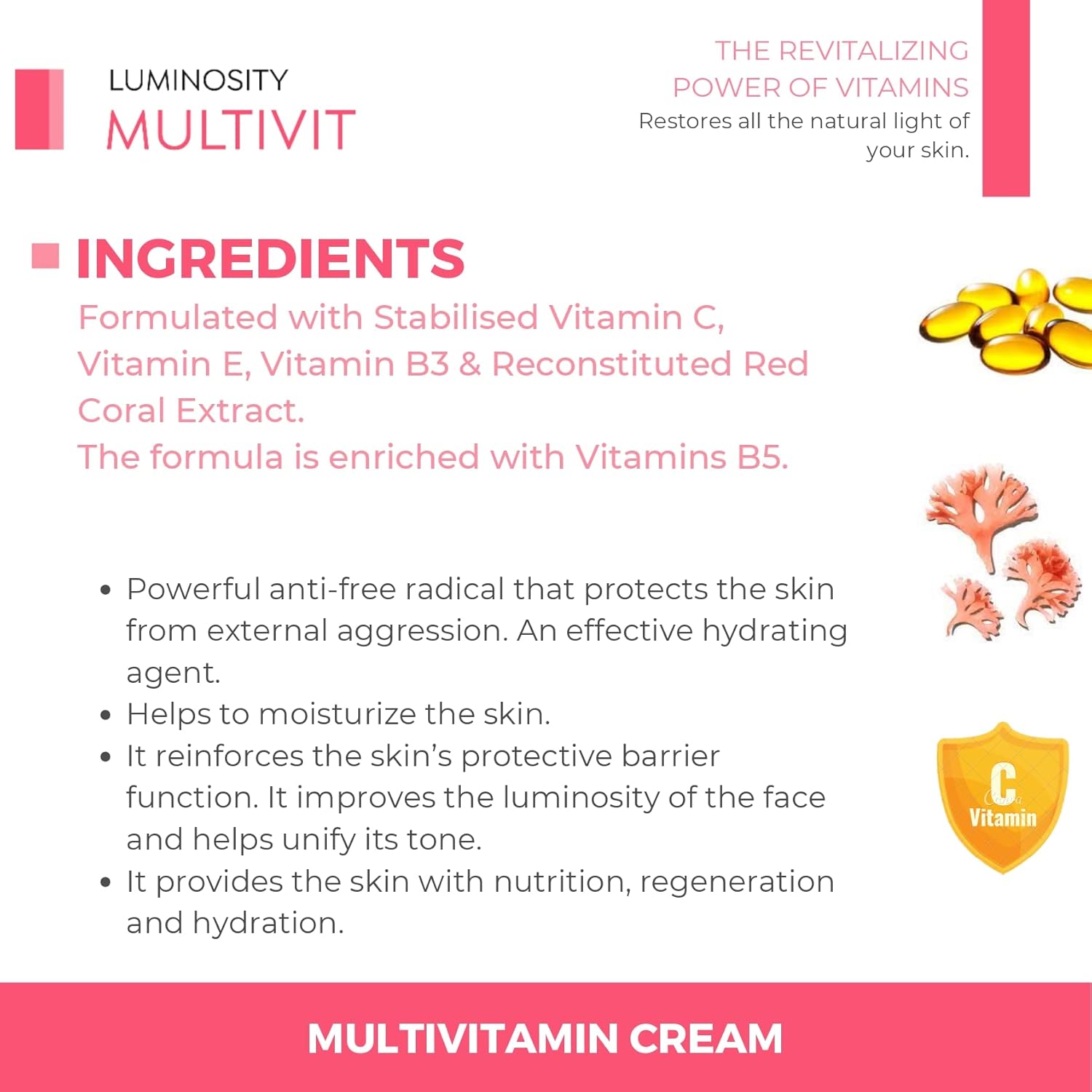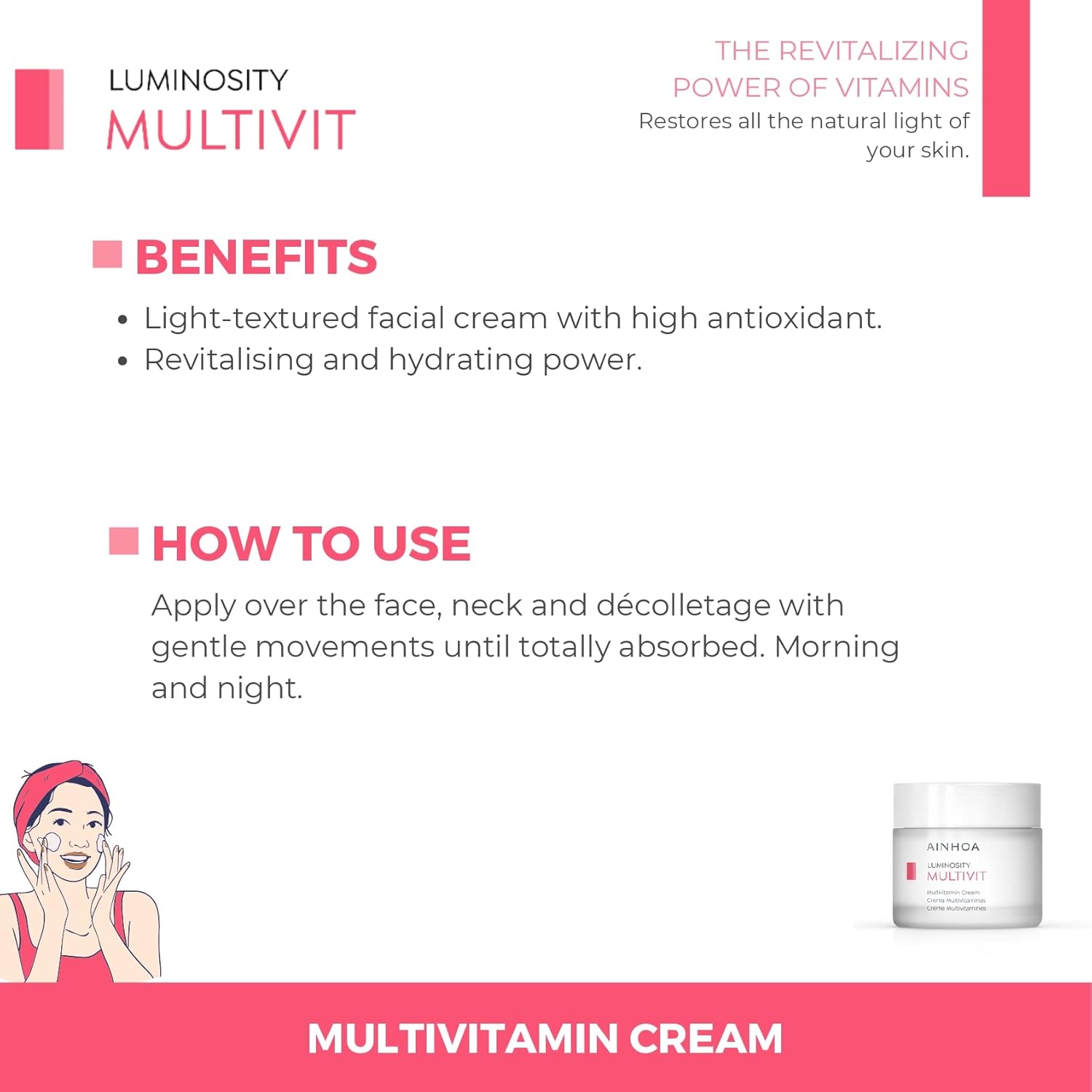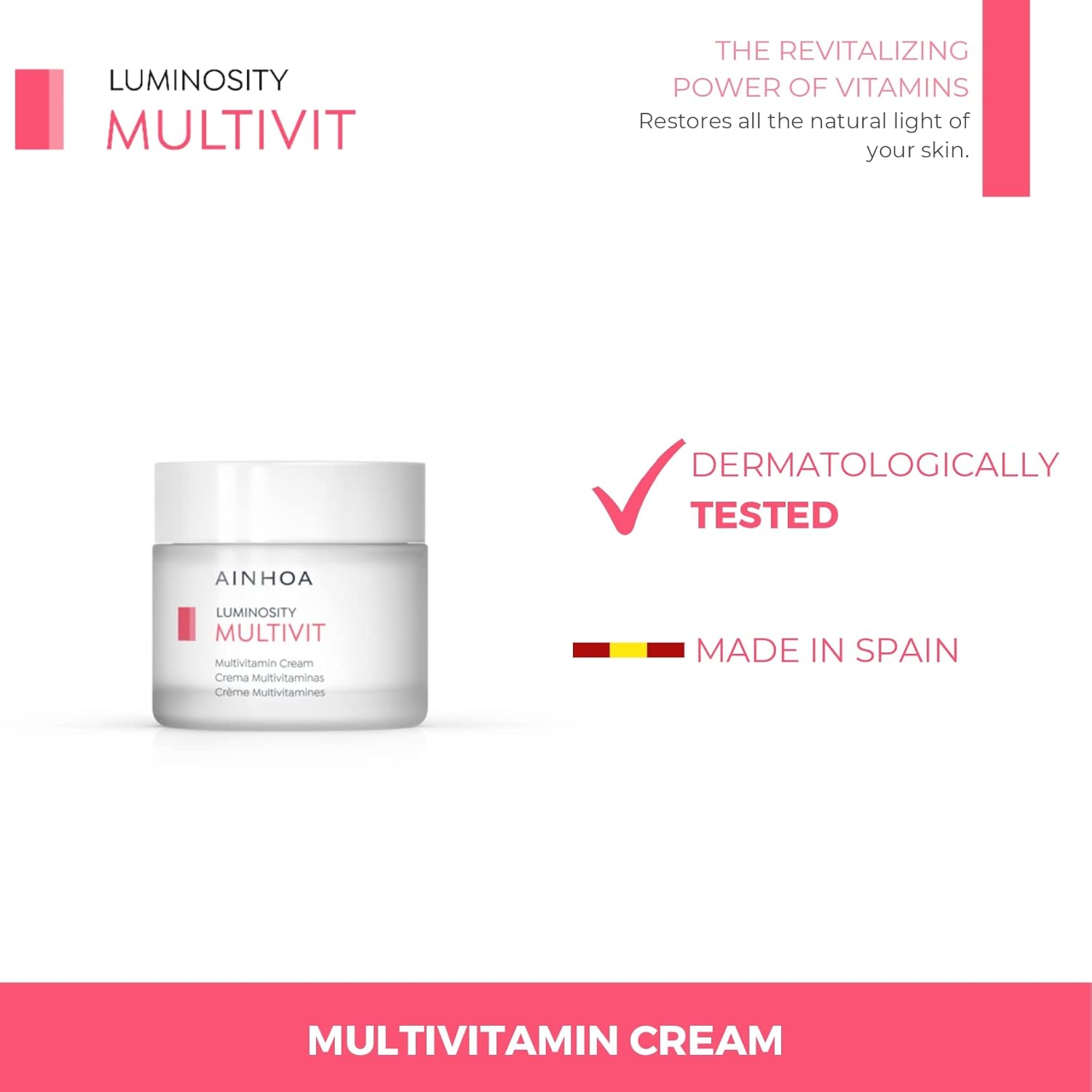 Ainhoa Multivit Multivitamin Cream With Stabilised Vitamin C, Vitamin E, Vitamin B3 & Red Coral Luminosity For Combination Skin, 50ml