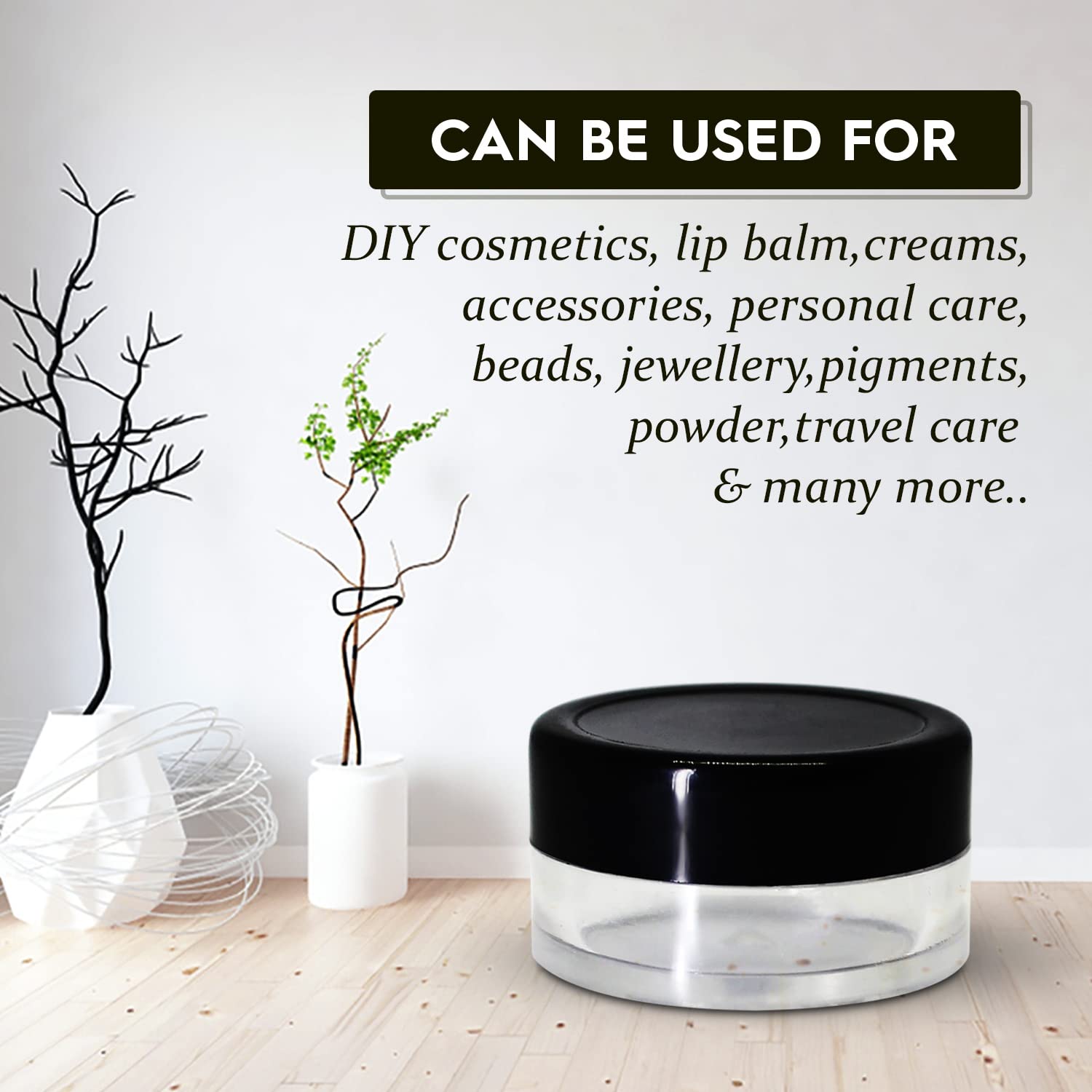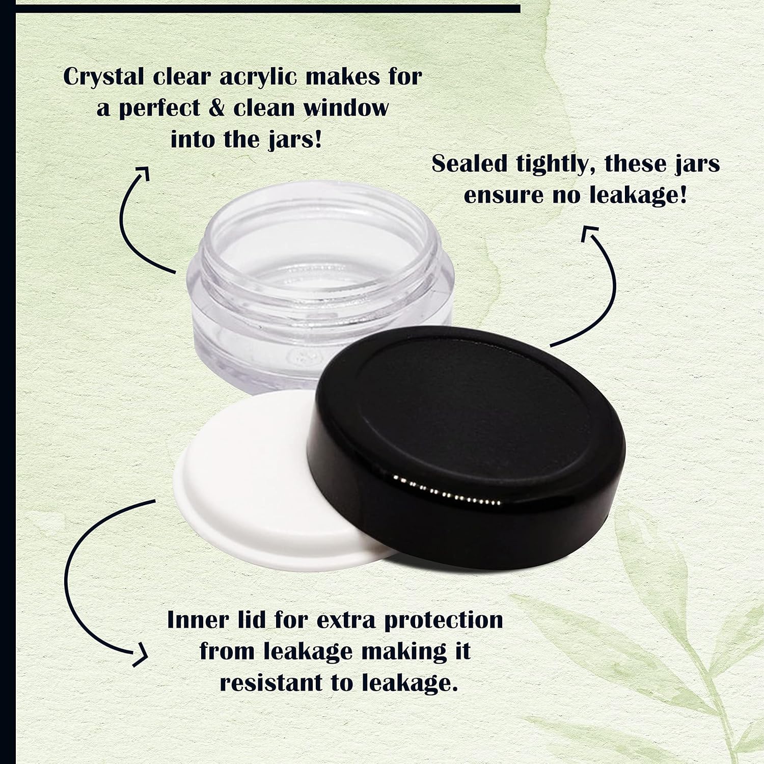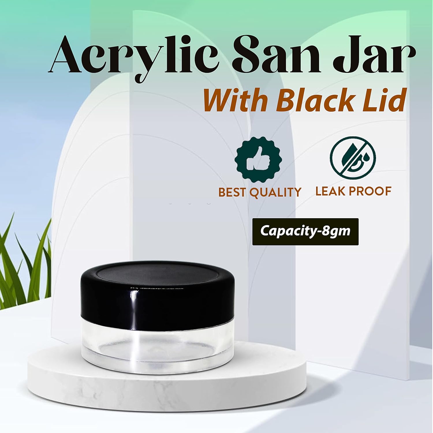 Nsb Herbals 8 GM Empty Acrylic San Jar Transparent/Clear Cosmetic Container With Black Lid And Leakproof Inner Lids For Lip Balms, Eyeshadow, Makeup & DIY Beauty Products (Pack of 12)